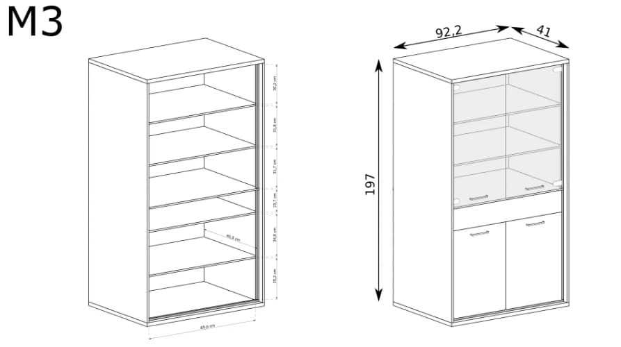 Witryna duża M3 szerokość 92,2 cm MEDIOLAN Hikora