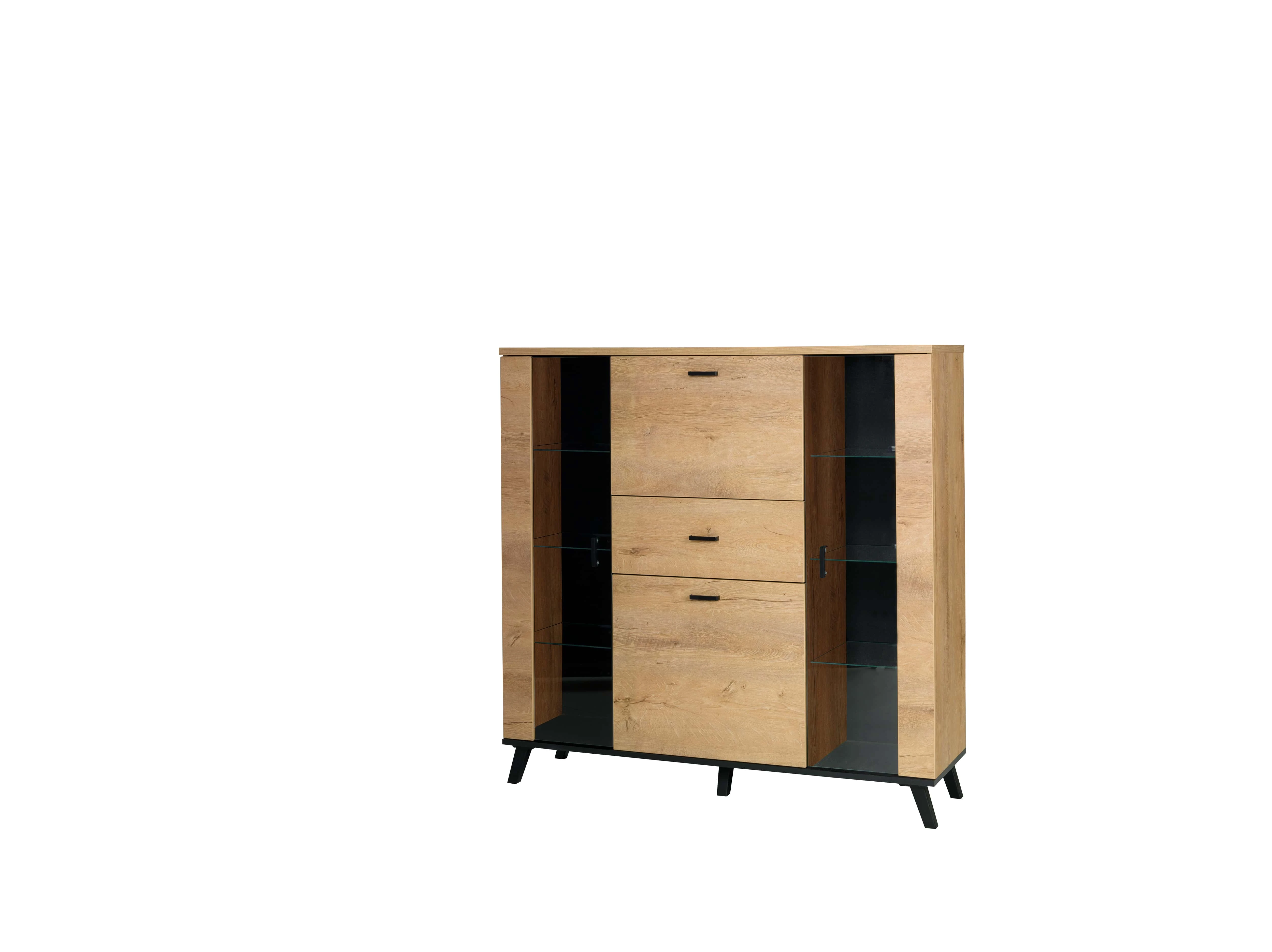 Witryna wysoka JOHN 3 szerokość 131 cm dąb lefkas / czarny