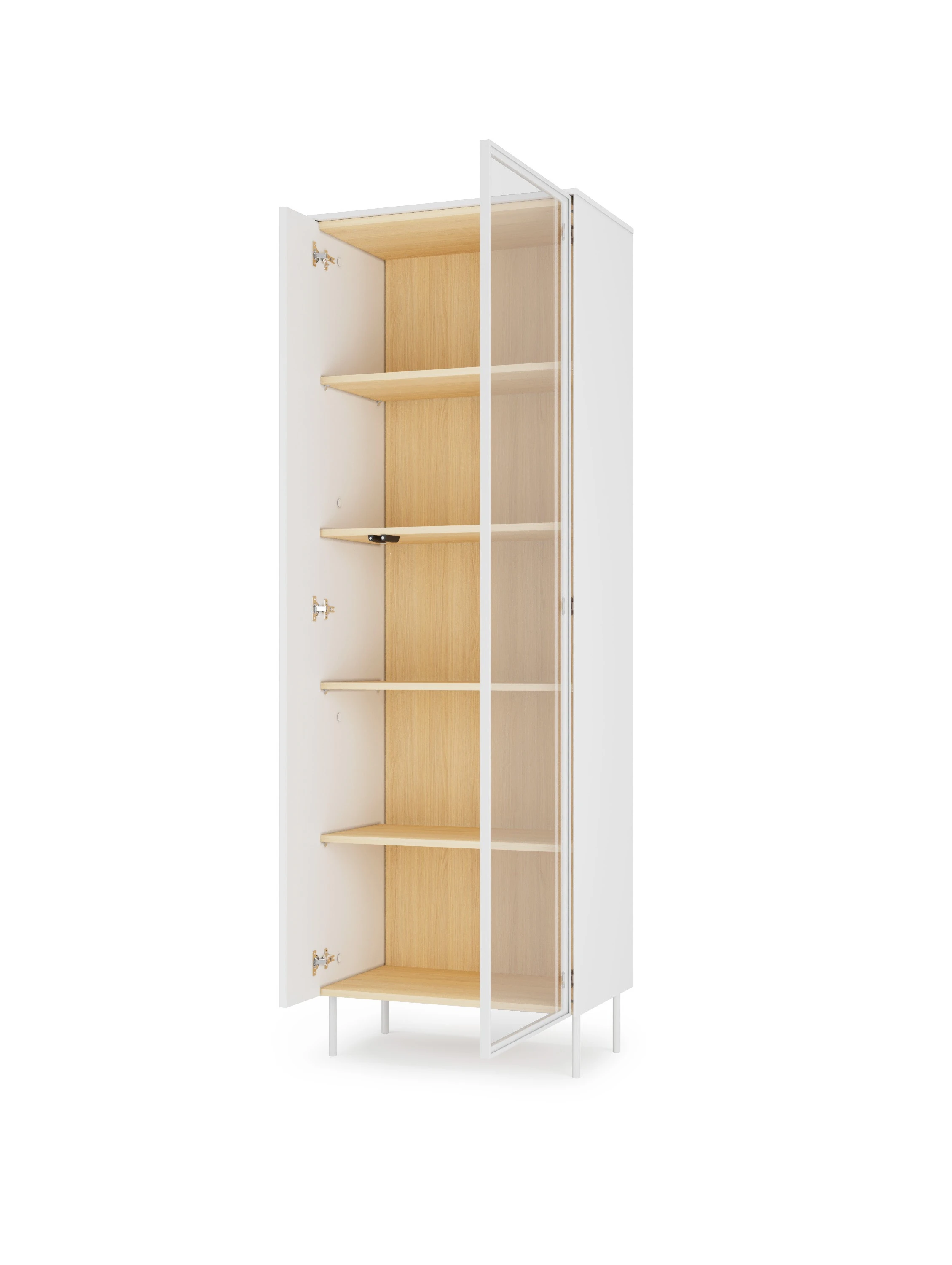 Jednym z najbardziej charakterystycznych elementów kolekcji są ryflowane fronty wykonane z płyty MDF (18 mm), które nadają meblom eleganckiej struktury i wyjątkowego charakteru. Dodatkowo witryny wyposażone zostały w: