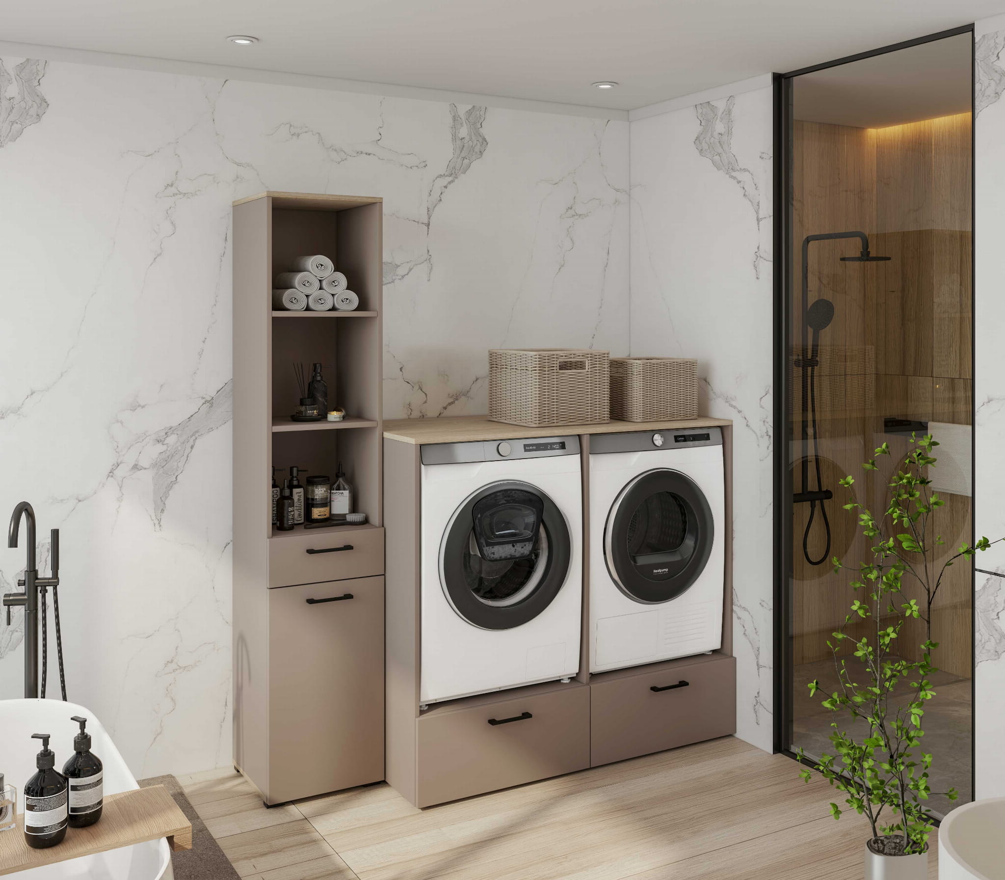 Wielu z nas zmaga się z wyzwaniem, jakim jest wkomponowanie pralki i suszarkę w aranżację łazienki. Zabudowa na pralkę i suszarkę do łazienki z kolekcji ROSA to doskonałe rozwiązanie, które pozwala: