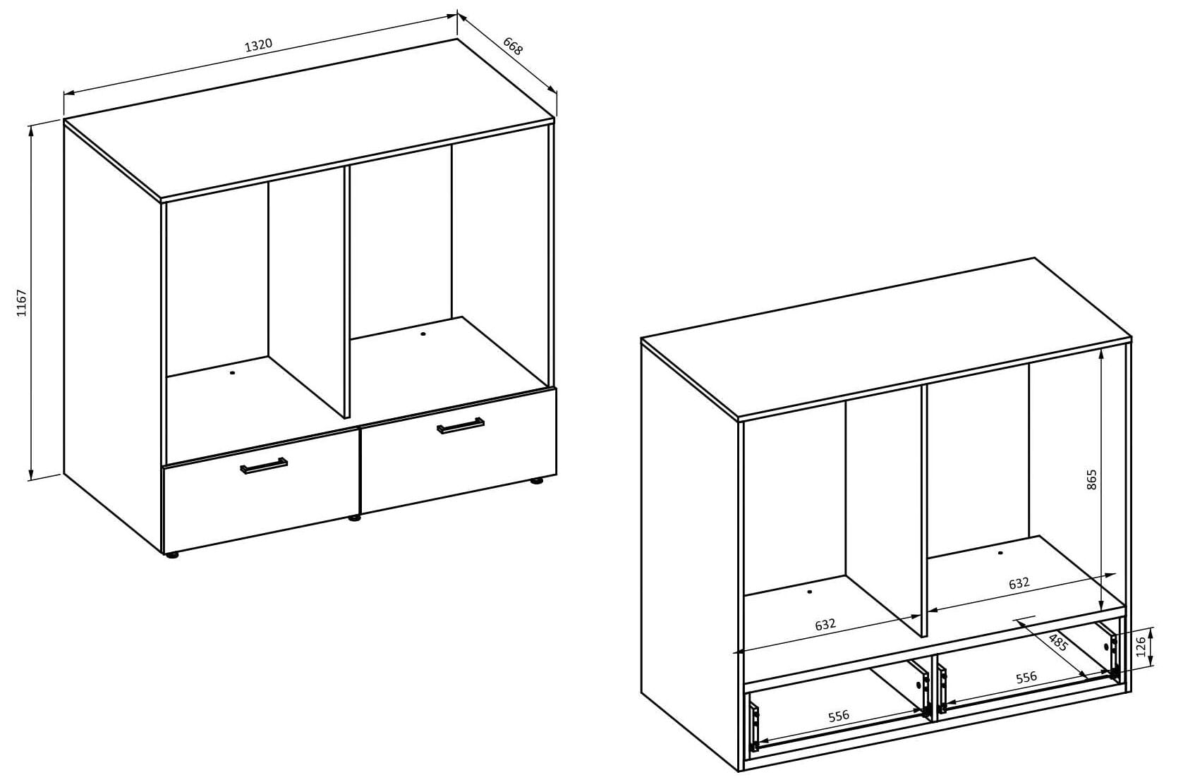 Zabudowa Na Pralkę i Suszarkę ROSA Szerokość 132 cm Congo - Dąb Olejowany 2-Szuflady Do Łazienki Helvetia Meble 30CDNO65