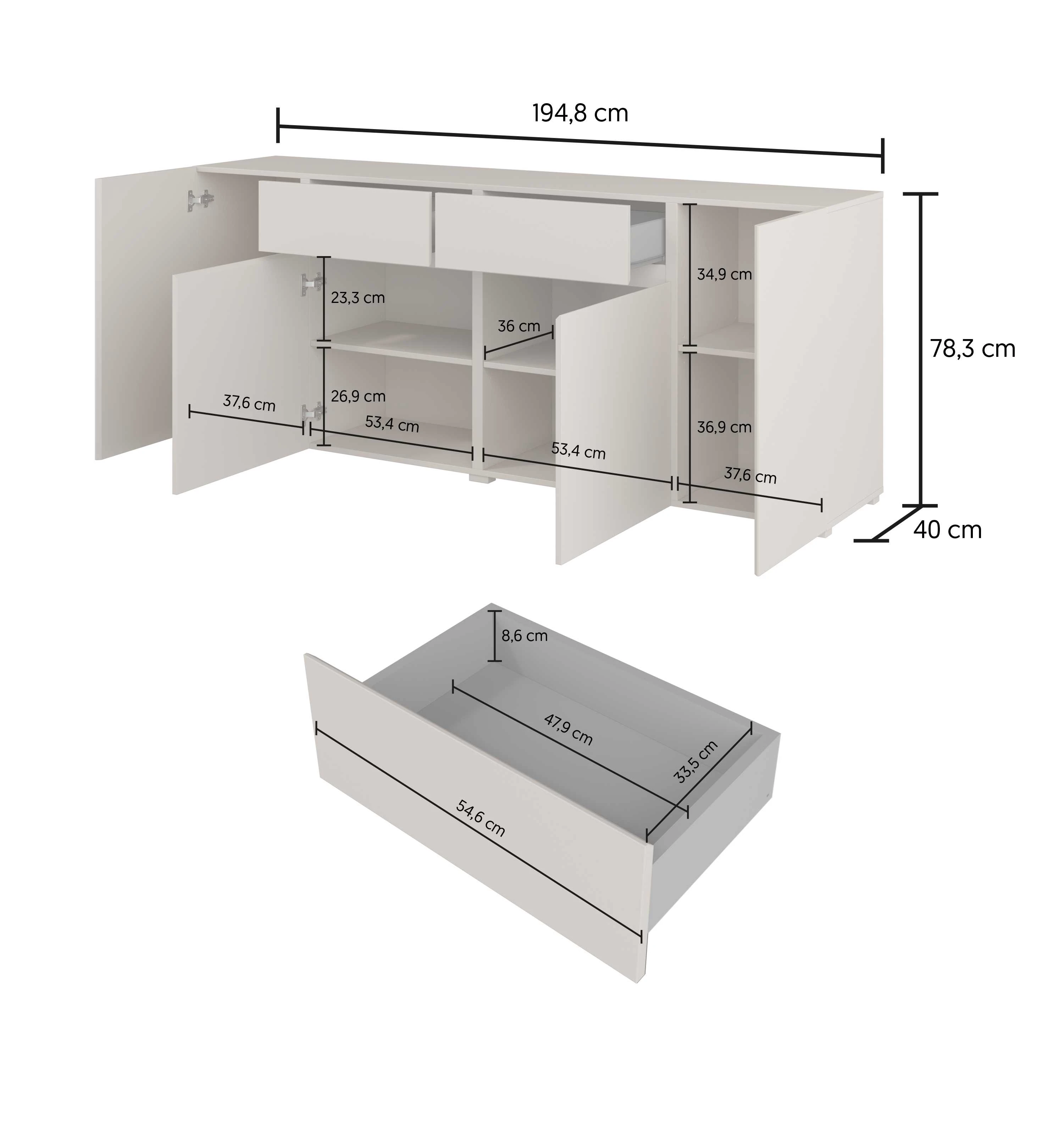 Komoda ASYMETRIC Szerokość 195 cm Kaszmirowa Nowoczesna Do Salonu Helvetia Meble 24KSOA47