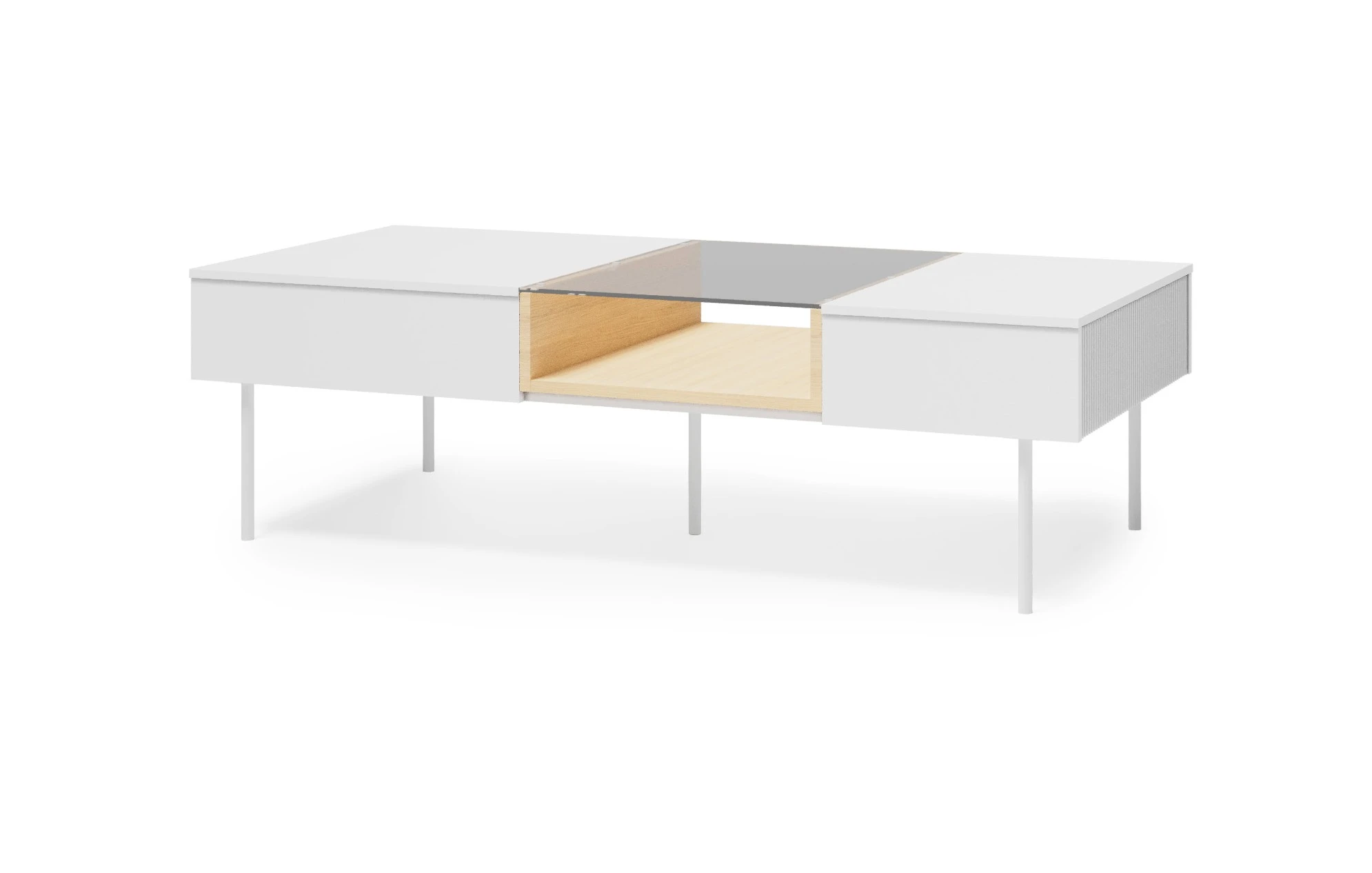 Stolik Kawowy z Przeszkleniem Do Salonu Biały + Dąb Vincenza Szerokość 132 cm LIBA LB-07 LB7BJDV