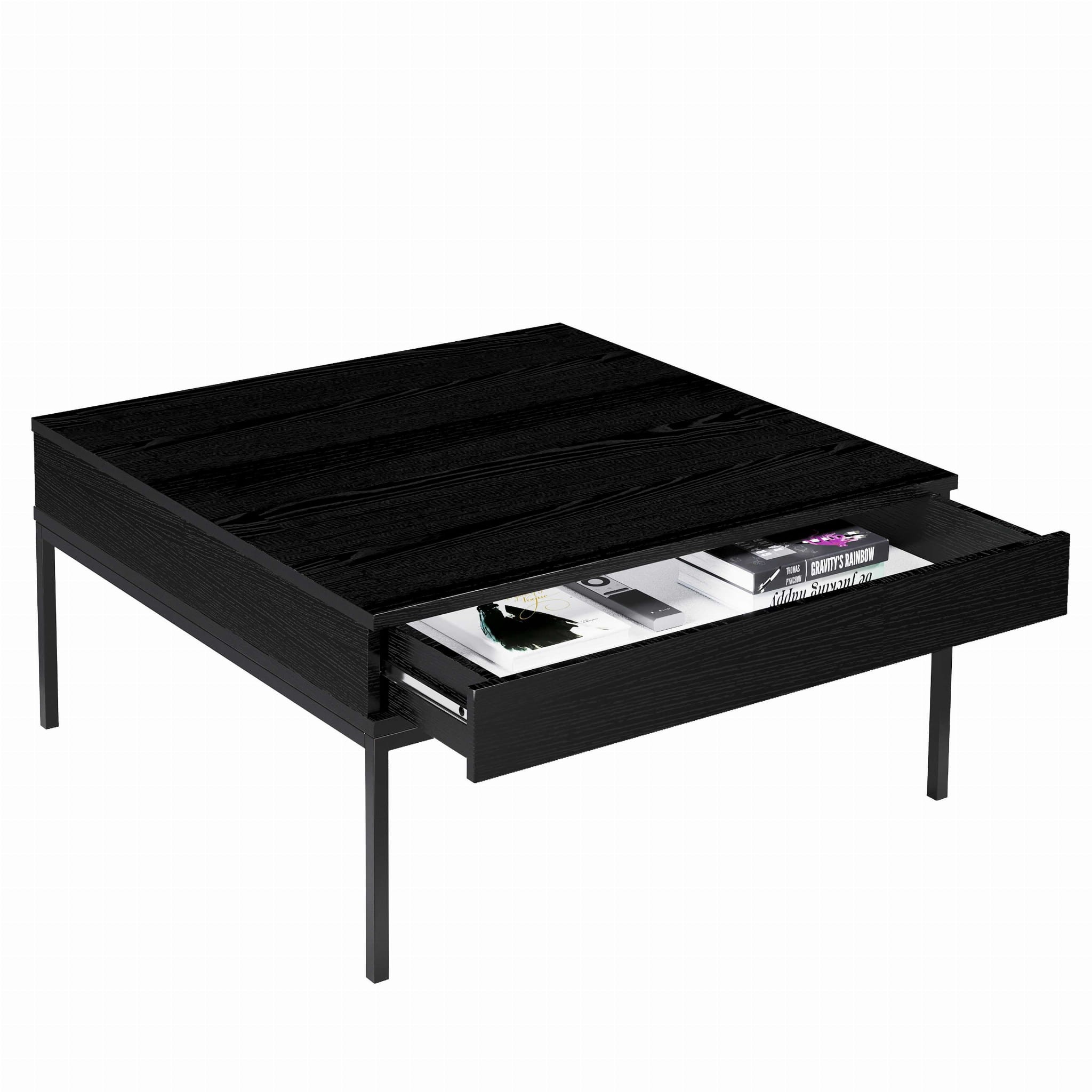 Stolik Kawowy INDUST Szerokość 90 cm Czarny 2-Szuflady Ława Do Salonu Styl Loftowy Industrialny