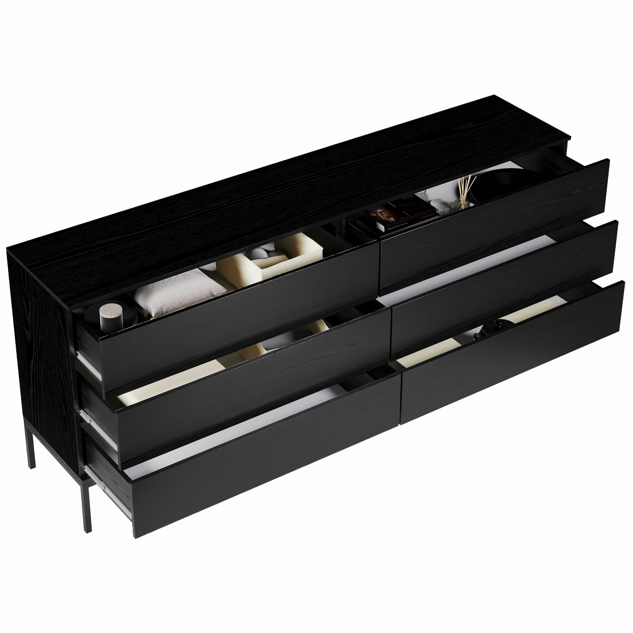 Komoda INDUST Szerokość 150 cm Czarna 6-Szuflad Do Salonu Styl Loftowy Industrialny
