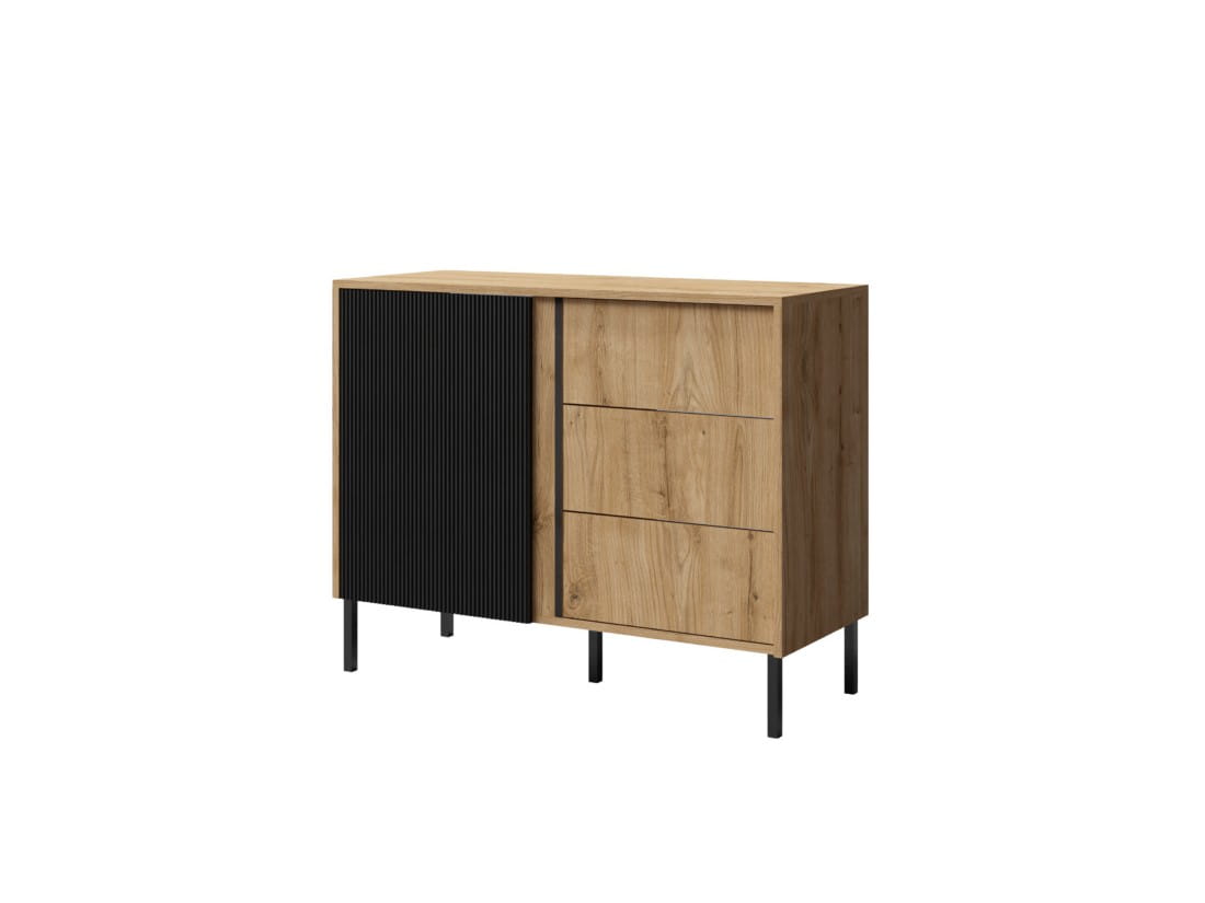 Komoda Niska MIA 5 Szerokość 100 cm Dąb Odwieczny + Czarny 3-Szuflady Styl Loftowy Jurek Meble