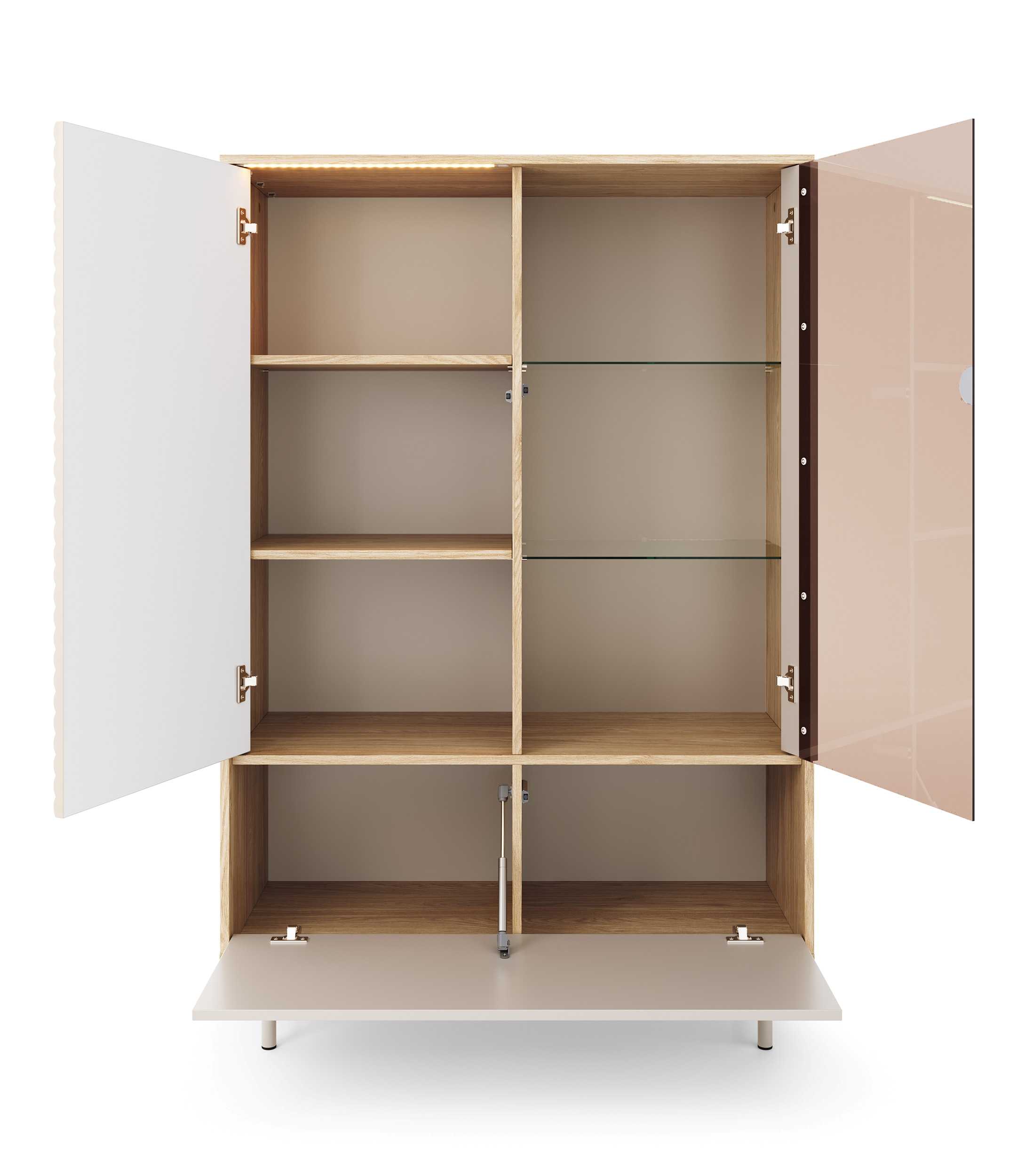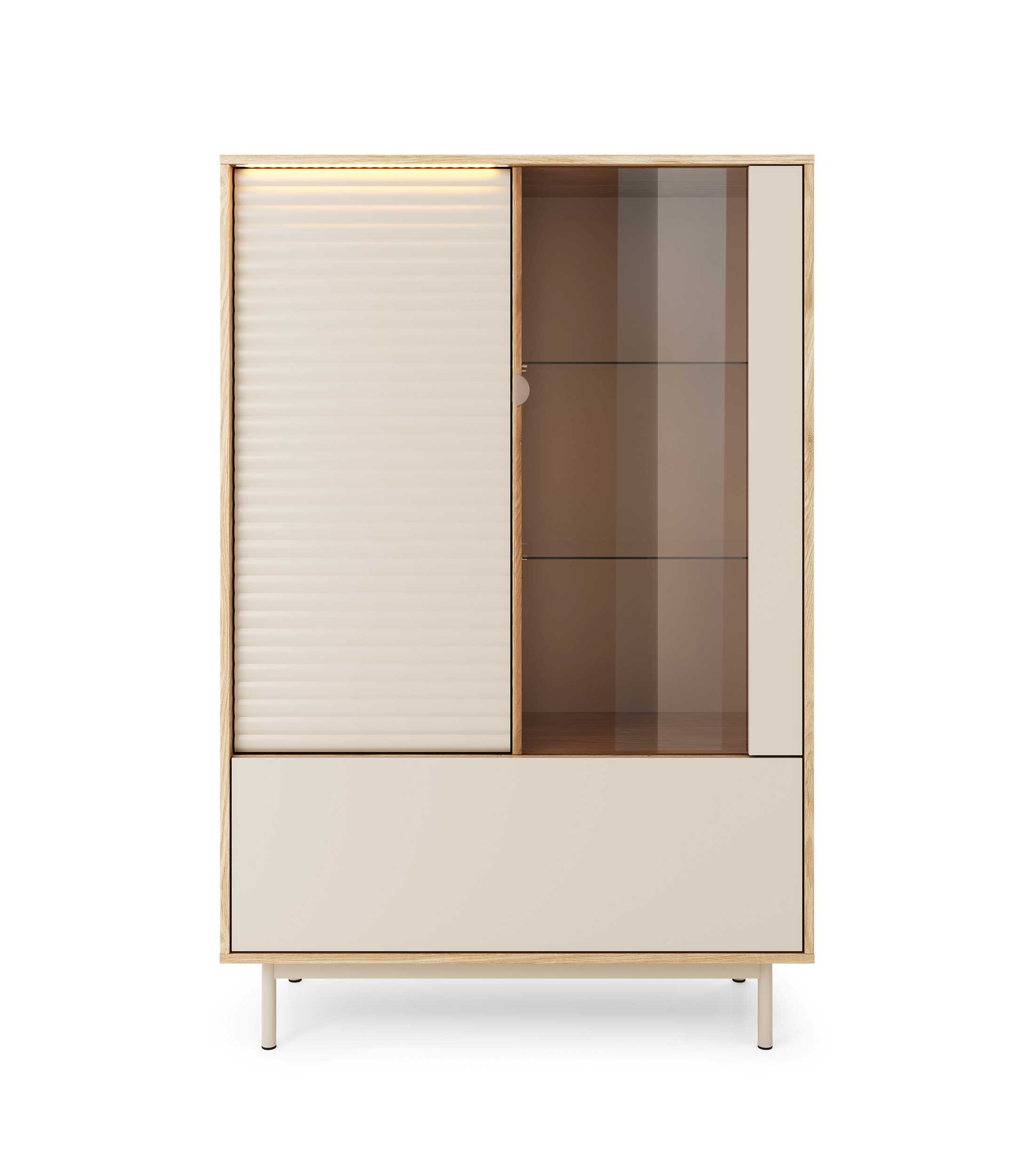 Witryna TILA TI1 Szerokość 100 cm Kaszmir / Dąb Olejowany Ryfle Trzydrzwiowa Nowoczesna Do Salonu
