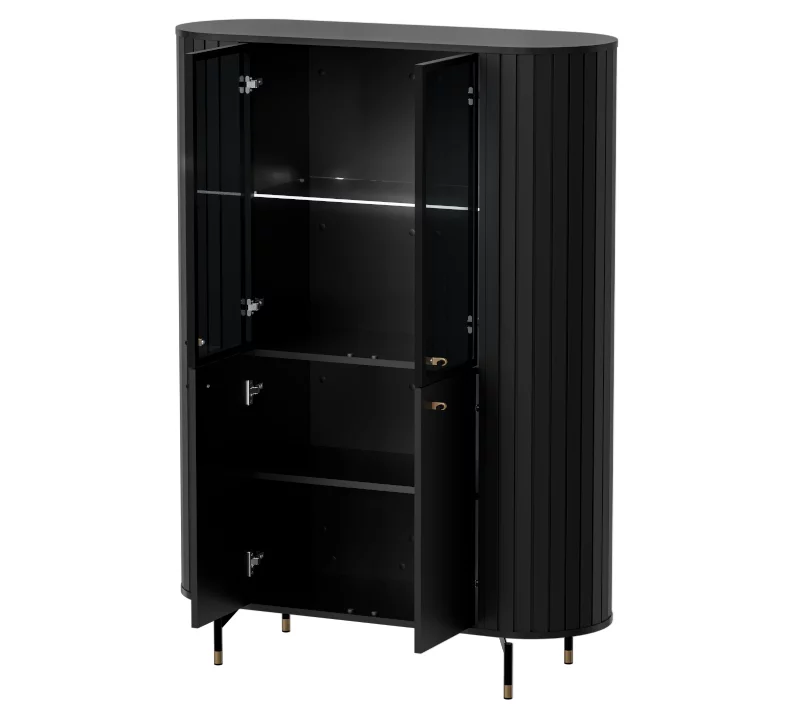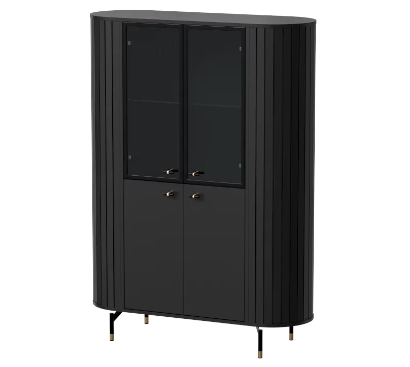 Witryna ZANTE ZA1 Szerokość 112 cm Czarny Mat Zaokrąglone Ryflowane Boki Nowoczesna