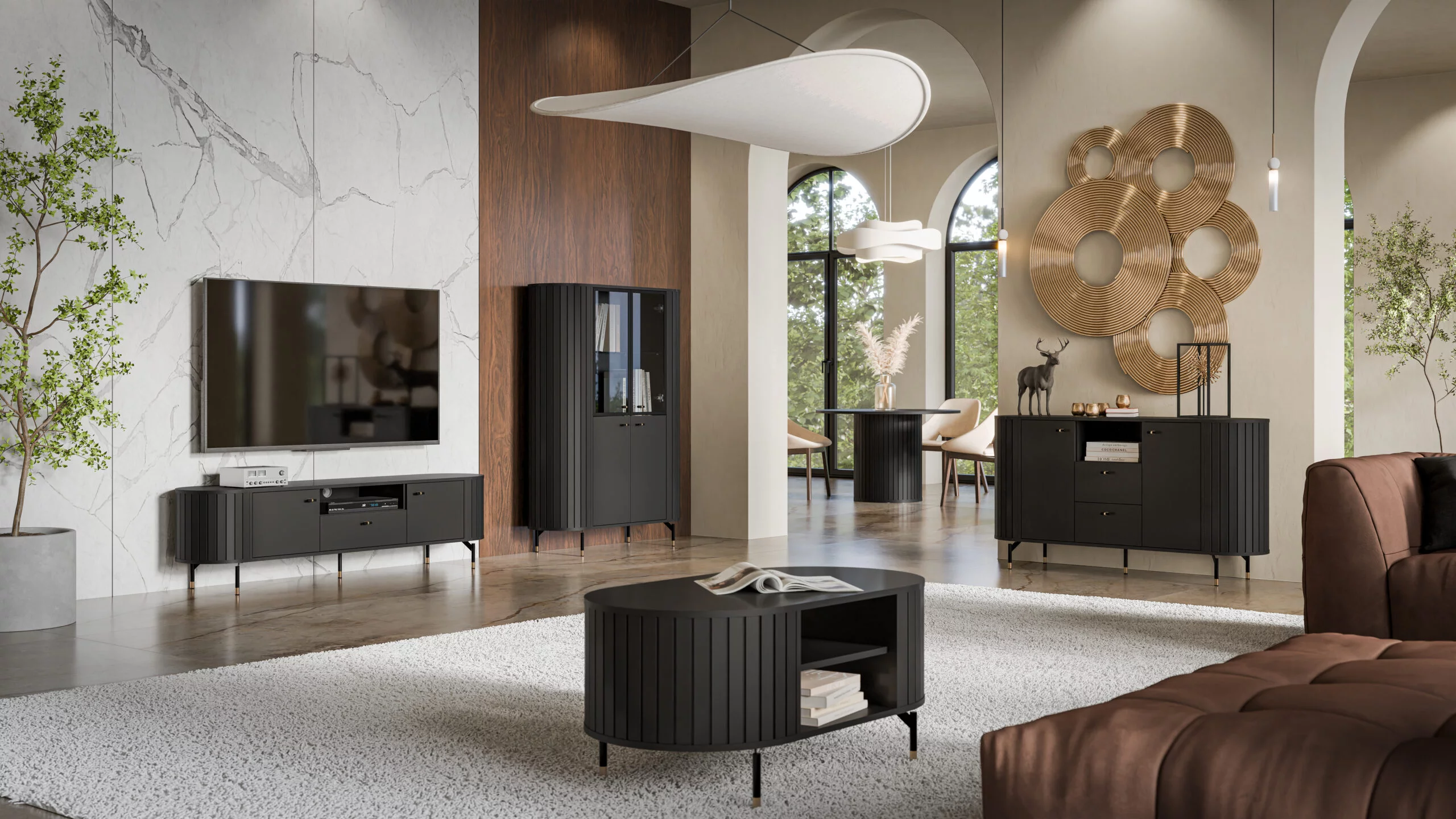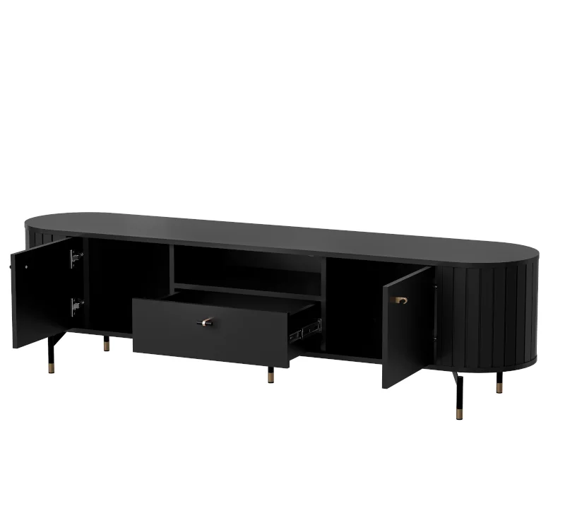 Zestaw Mebli Do Salonu ZANTE 1 Czarny Mat Zaokrąglone Ryflowane Boki Nowoczesny