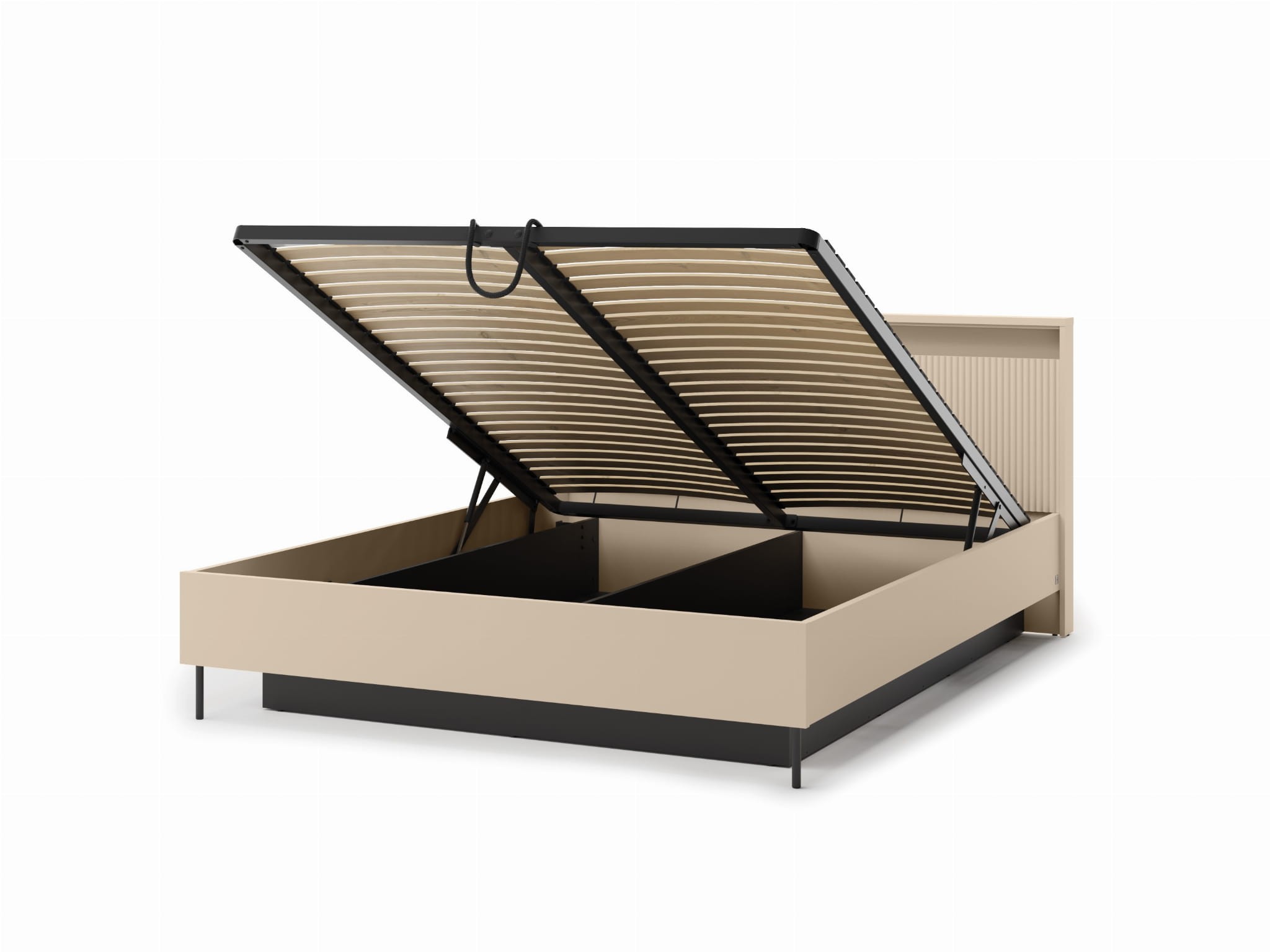 Łóżko TREND TS-03 160 x 200 cm Beż Piaskowy / Czarny Oświetlenie LED Ryflowany Zagłówek TS3160BPC
