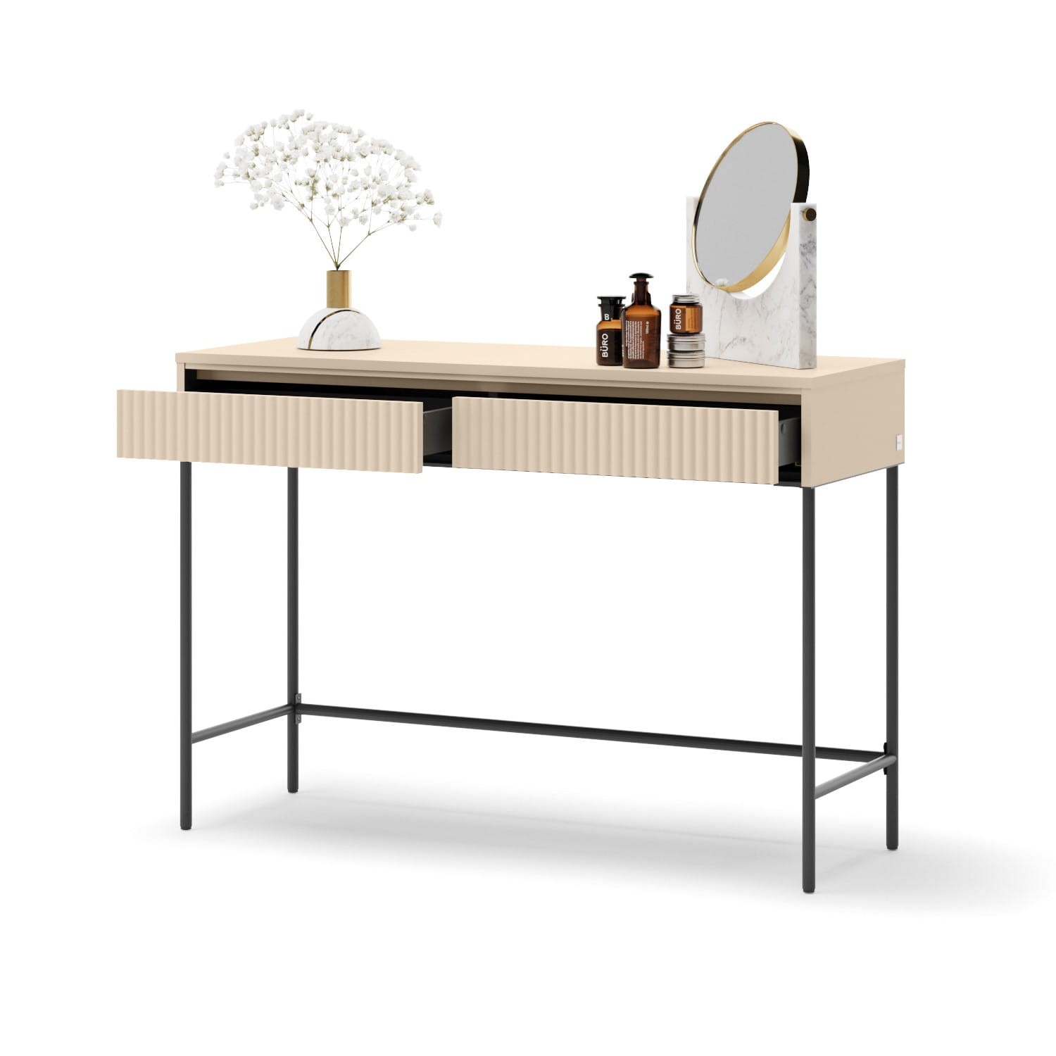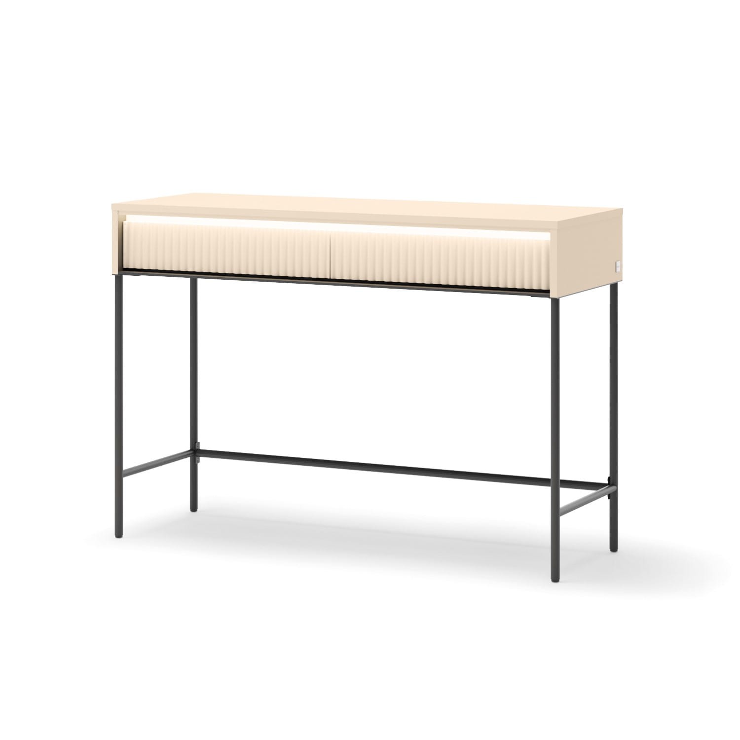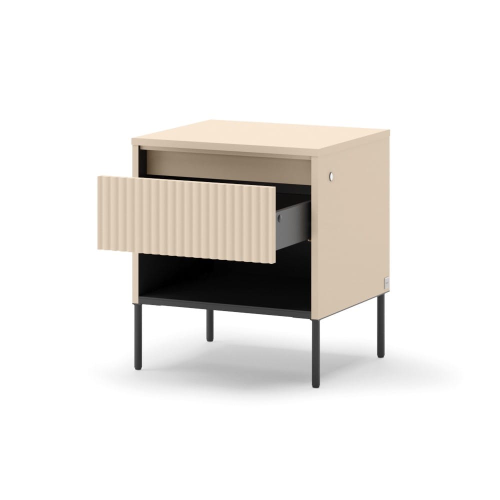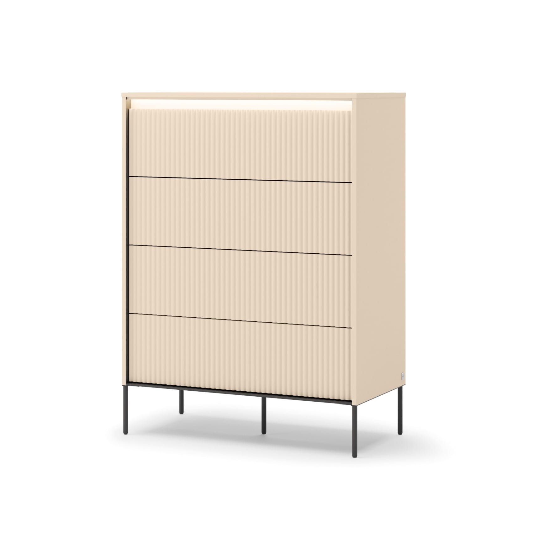 Zestaw Mebli Do Sypialni TREND Beż Piaskowy / Czarny Oświetlenie LED Ryflowane Fronty Sypialnia