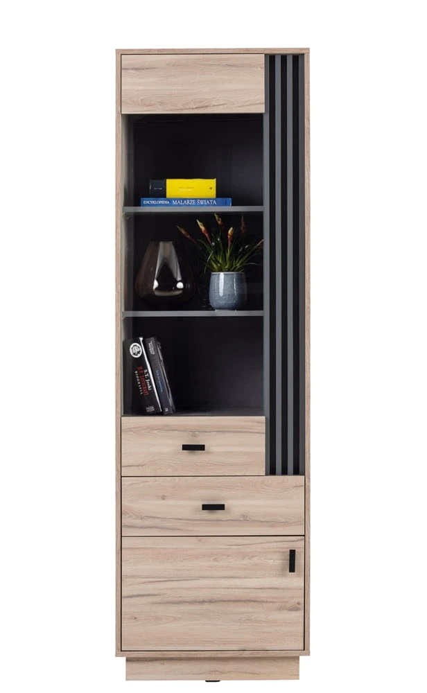 Regał ALLMO jednodrzwiowy z dwiema szufladami dąb estana / antracyt AL3